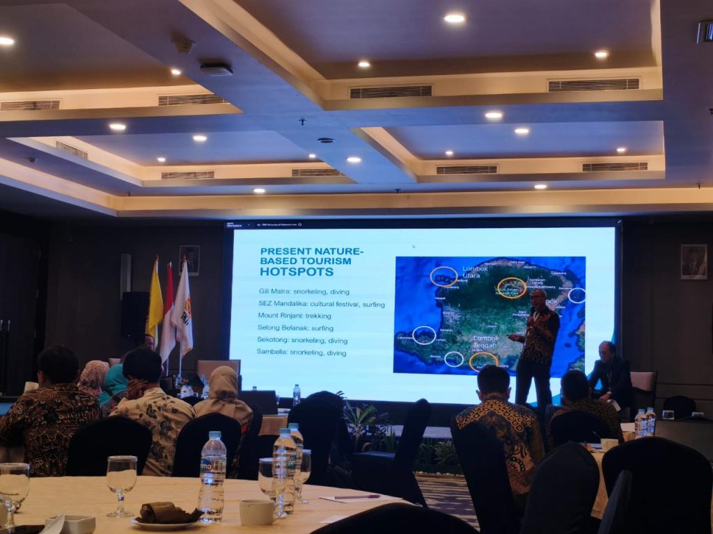 Penelitian yang dipresentasikan Prof. Imam menyoroti tiga destinasi utama pariwisata berbasis alam di Lombok, yaitu Taman Wisata Alam Laut Gili Matra, Taman Nasional Gunung Rinjani, dan Kawasan Ekonomi Khusus Mandalika. Ketiganya menjadi representasi penting untuk menilai keberlanjutan pariwisata di wilayah ini.